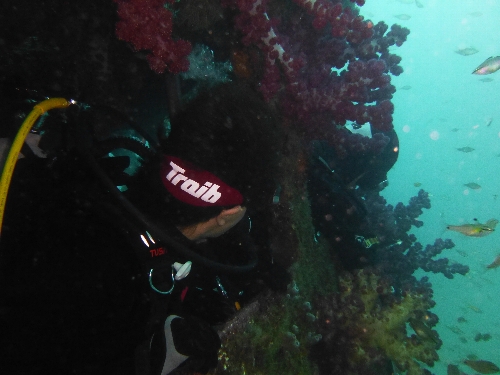 キンギョハナダイやスズメダイ群れを沈船の中から見たり。。