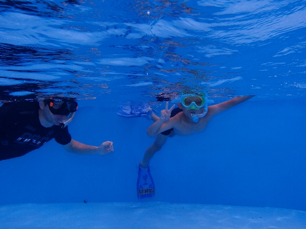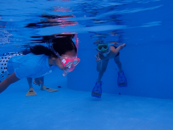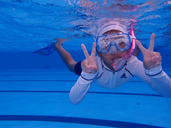 基本的な練習から、徐々に泳いだり潜ったりしてきました。