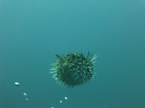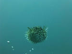 逃げ去っていくハリセンボン。