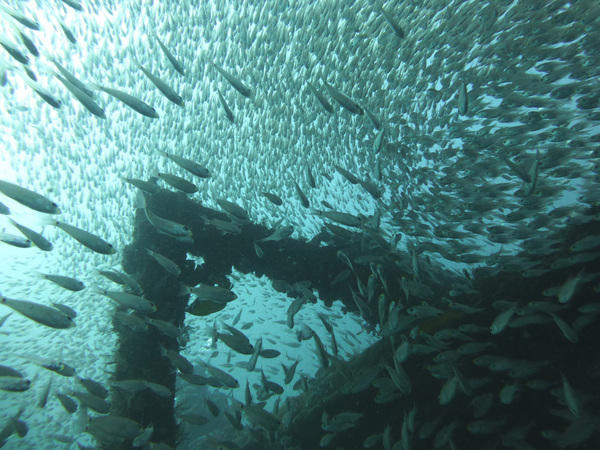 沈船にエントリーすると、すごい数の魚の群れで沈船が見えなかったようですよ~。