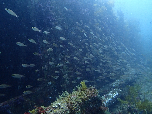 沈船の周りはお魚でいっぱい!!