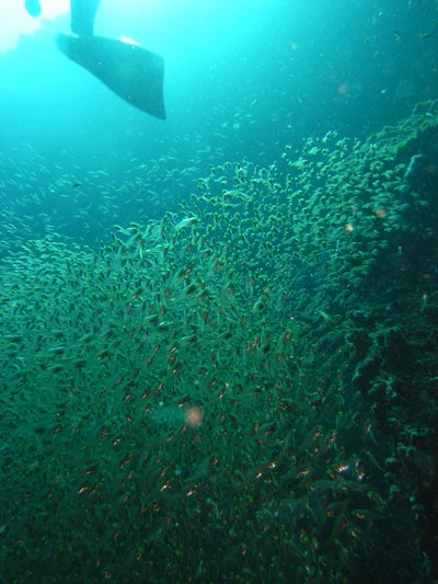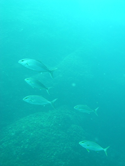エントリーしてすぐに、カンパチの群れがグルグルと周りを泳いでいました♪♪