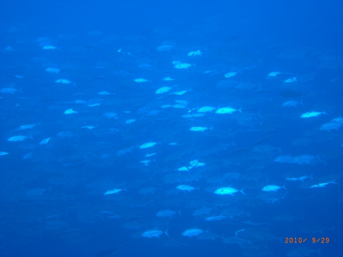 ちょっと遠かったですが、確かにギンガメアジの群れが♪♪