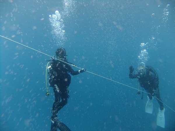 ダイビング復習チームは、いろいろな技術を思い出しながら