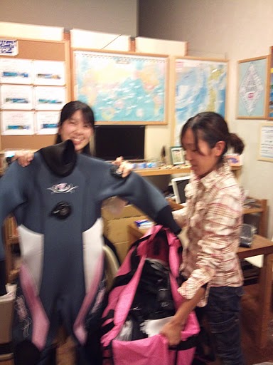 器材&ドライスーツが届いていたので、名前書いたり、サイズ合わせたり!