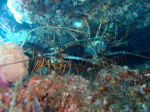 岩の隙間にぎっしり・・・イセエビ!