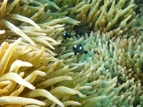小さなクマノミやミツボシクロスズメダイも