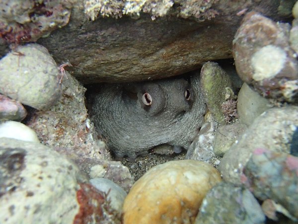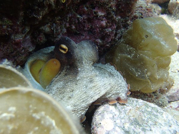 穴の中を覗くとタコが!