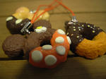 蛍光色のブルーの水玉模様でとんがり気味のお口をしています(^^)