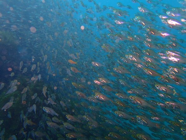 沈船ではキンメモドキの群れが大量で