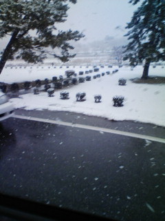 行きの高速道路は、雪が積もっているところがあったり