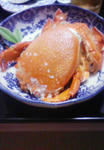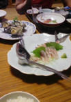 晩御飯にアサヒガニやトビウオの刺身などが出てきました。