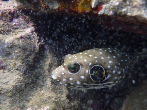 おっきな岩のちっちゃな穴に隠れている魚も。