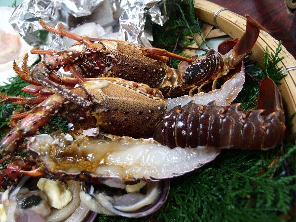 サザエやホタテやオオアサリやイセエビ、イカなどを