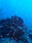 サンゴに隠れているのはソラスズメダイ。