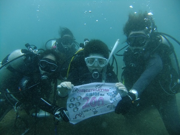 まず、1本目でHさんが200本記念ダイブでしたので