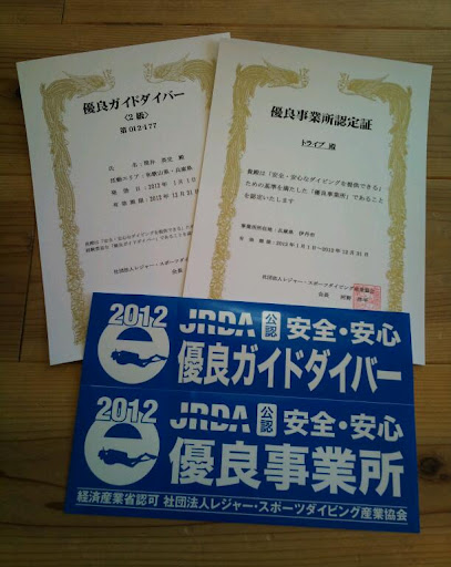 本年、優良ガイドダイバーに続き、優良事業所にも認可されました!!