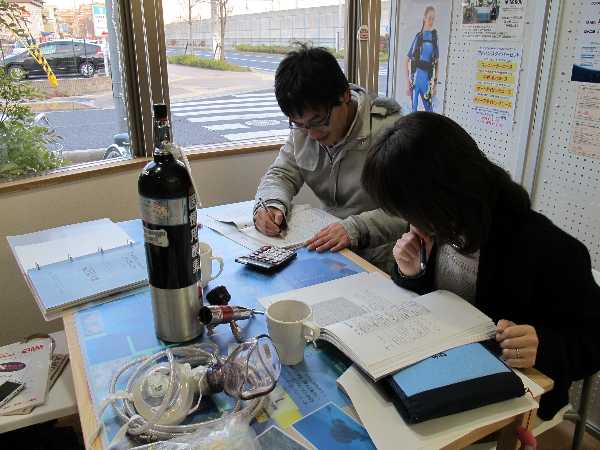 今日は夕方から入門コースの学科講習でK村さんがご来店。