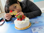 学科の前にたくさんのケーキに囲まれて。。