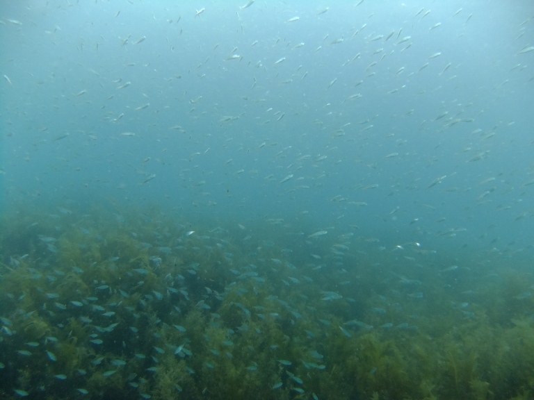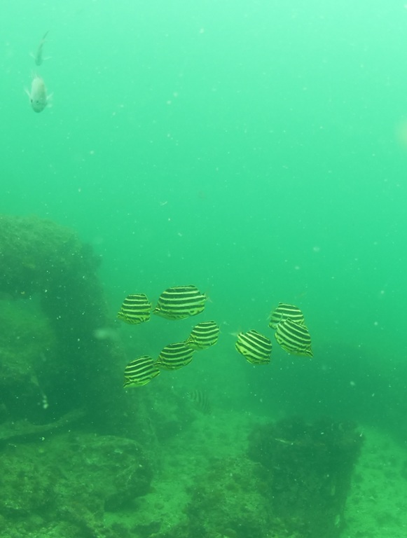 カエルアンコウ、オキゴンベ、イサキの群れ、キイロウミウシなどなど。