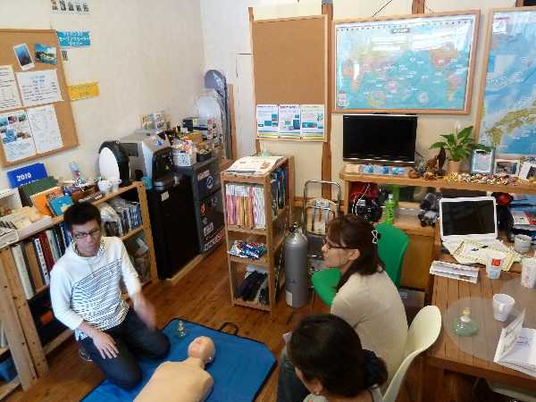 さっきダイビング入門コースの学科を受けに