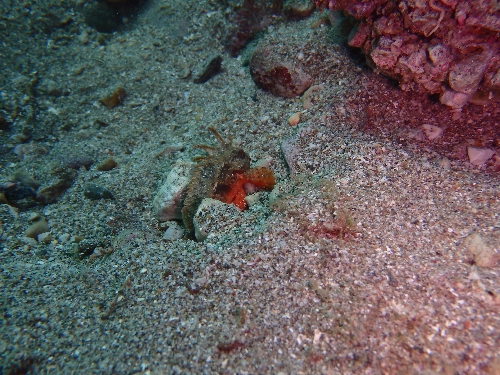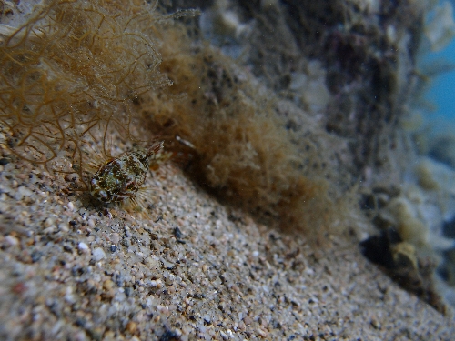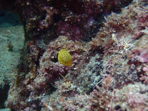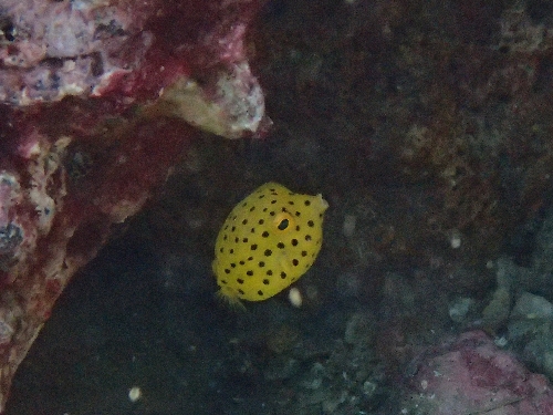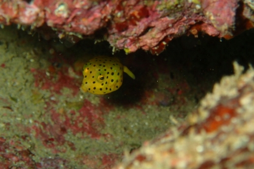 岩陰にミナミハコフグが隠れていました!!