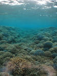 サンゴの周りにはたくさんの魚たちが泳ぎまわっていて